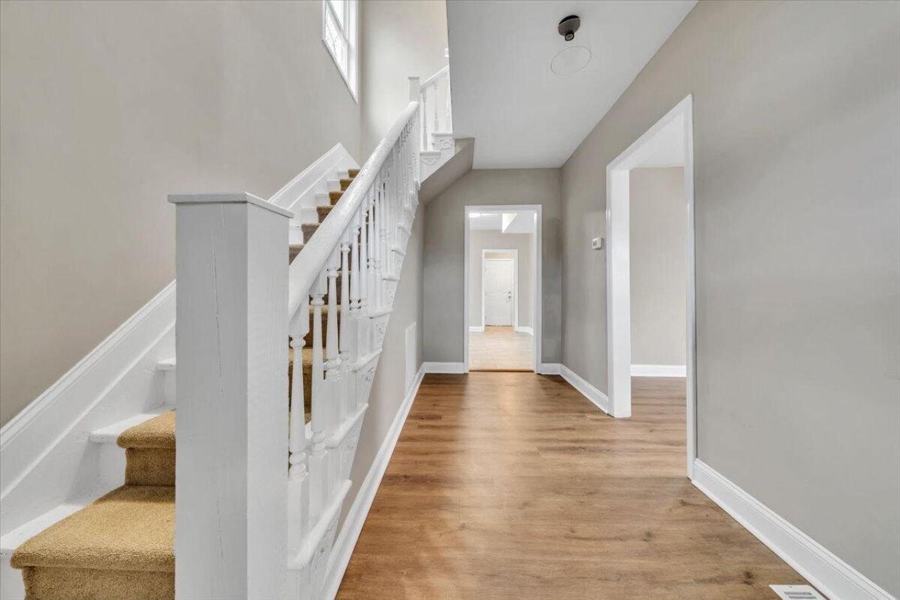 This well-maintained home offers a great combination of recent upgrades and functional living space. The exterior features a newly installed roof, updated windows, and vinyl siding for easy upkeep. A covered front porch provides a welcoming entry and a perfect spot to relax.Inside, the main level includes a comfortable living area, a separate dining space, and a kitchen equipped with stainless steel appliances, including a refrigerator, electric range, dishwasher, and built-in microwave. The kitchen, laundry room, and half bath all feature durable ceramic tile flooring. Fresh paint throughout the home gives it a clean, refreshed feel.Upstairs, there are three bedrooms with carpeting and a full bathroom finished with tile flooring and a tiled shower. Updated fixtures throughout the