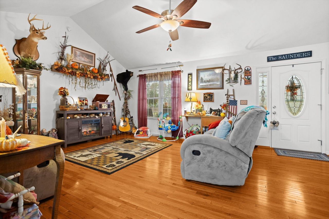 This charming home sits on 2.7 acres and was built in 2015, offering a modern and spacious layout. The main level features 3 bedrooms and 2 full bathrooms, with a kitchen that boasts high-end cabinetry and sleek granite countertops. The unfinished basement is plumbed for a third full bath, providing ample opportunity for future expansion. The property provides a private, serene setting with plenty of room for outdoor activities or further development.